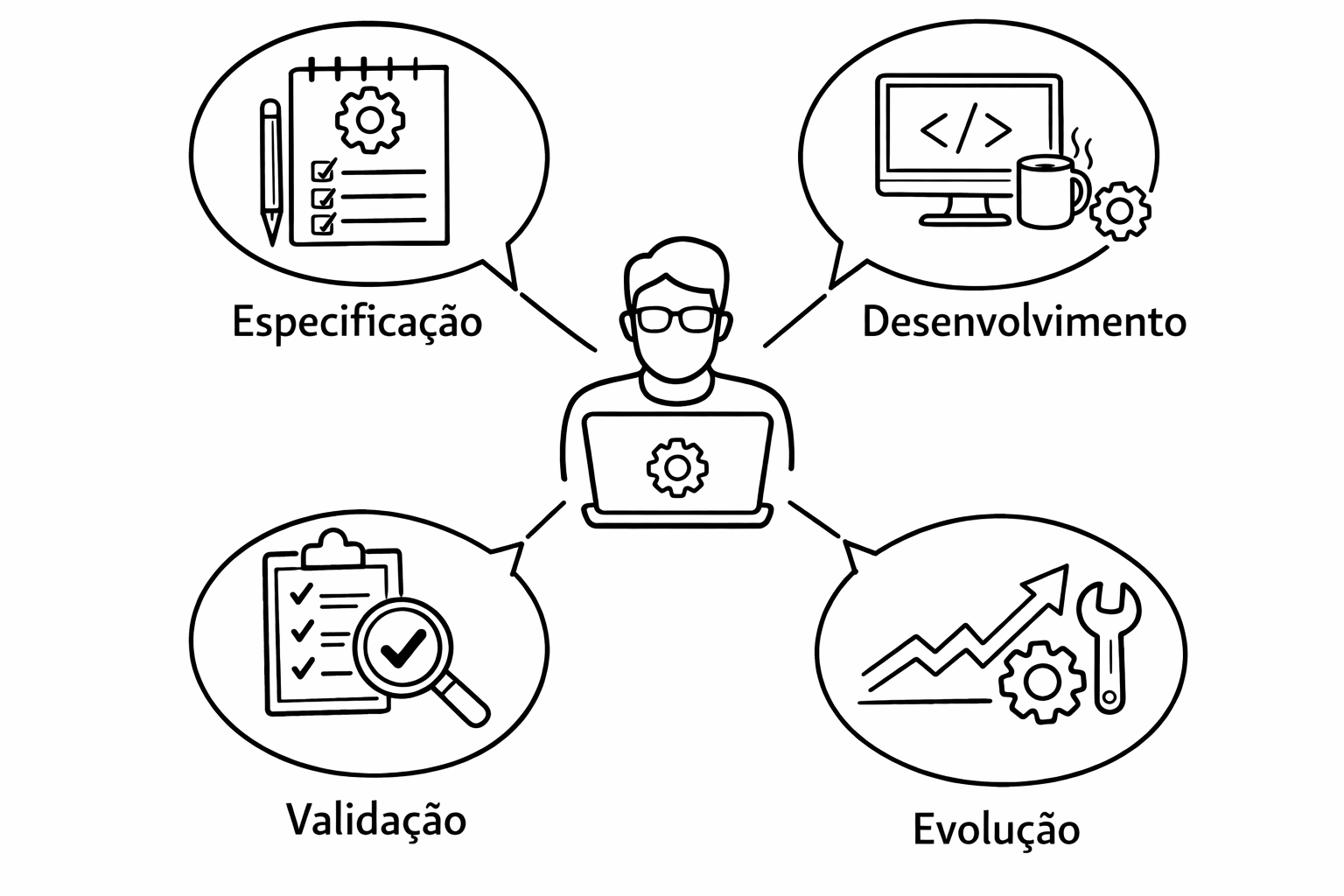 Para Sommerville (2011), as principais atividades da engenharia de software são: especificação de software, desenvolvimento de software, validação de software e evolução de software. Portanto, o profissional engenheiro de software deve estar preparado para executar todas essas atividades.